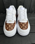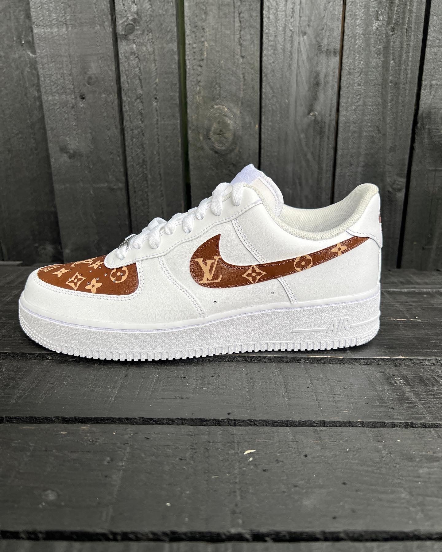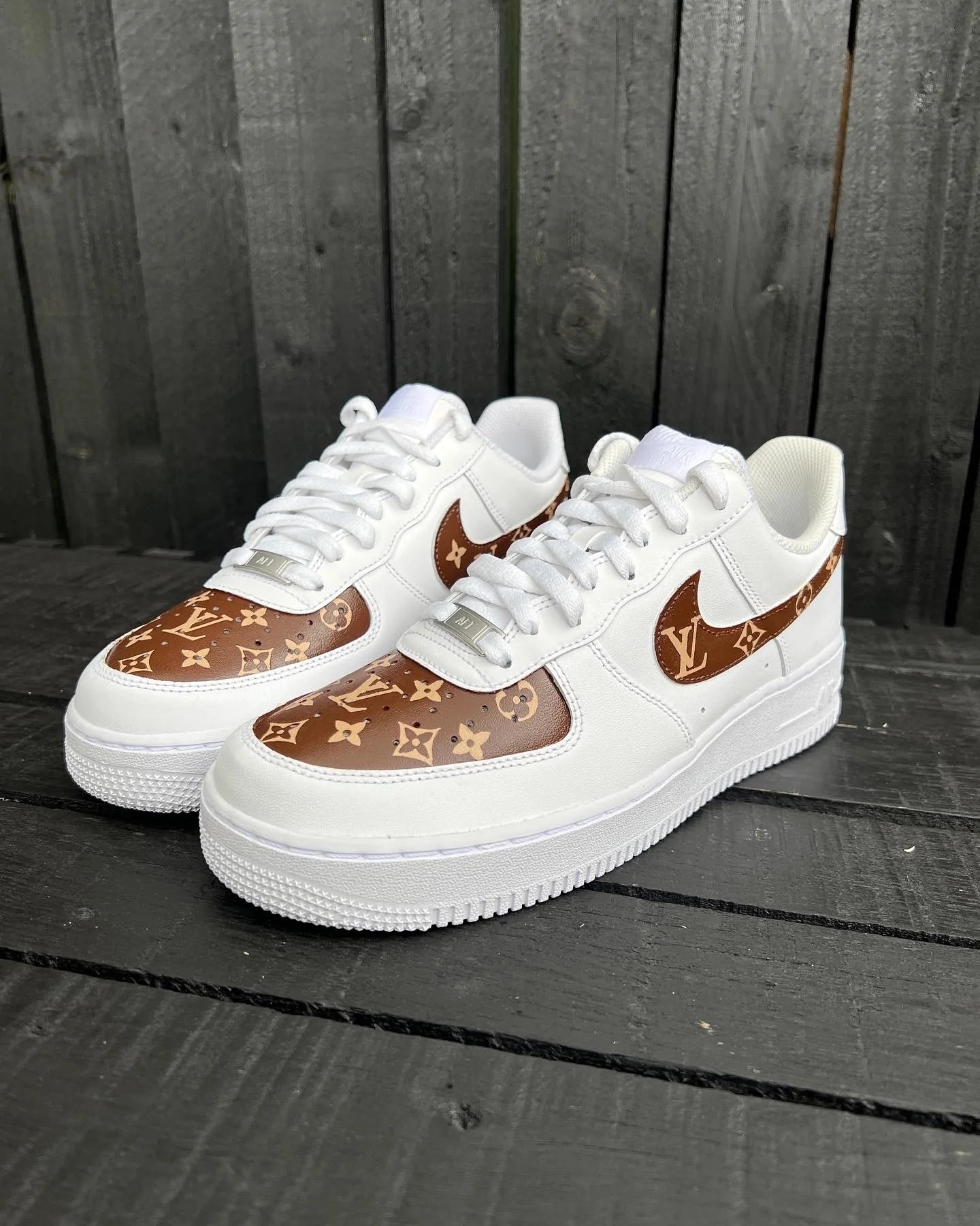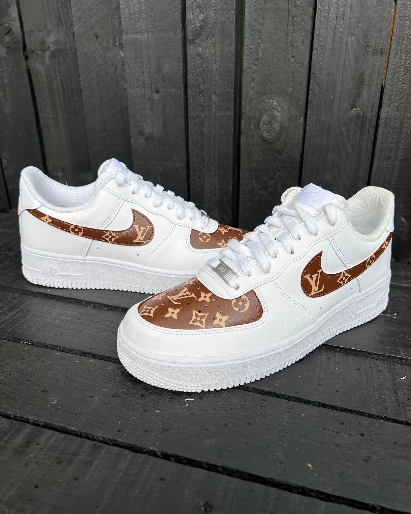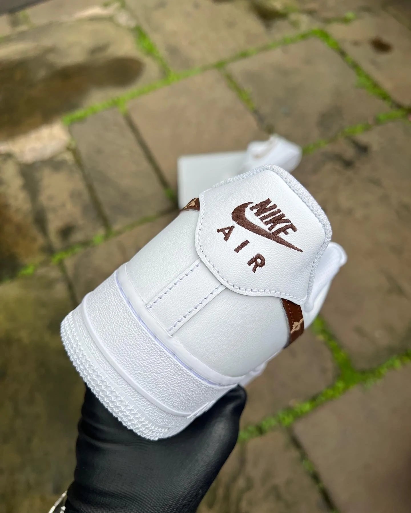 White AF1 with a stunning original colorway designer print hand painted across all ticks and fronts on this pair of trainers. The beautiful nude color scheme looks amazing on this hand painted designer custom. Overall this design is absolutely stunning and is definitely a MUST HAVE in your collection.
