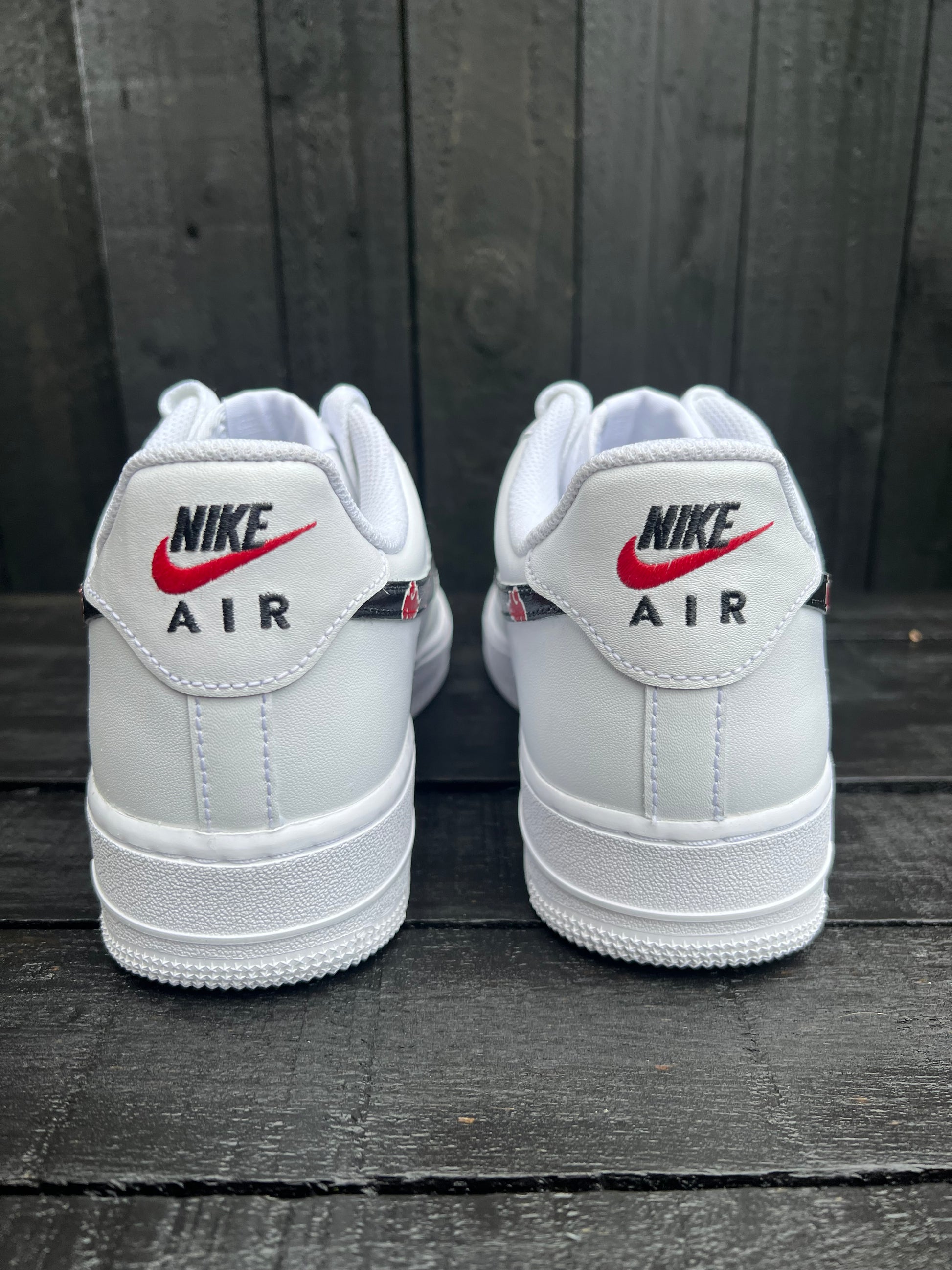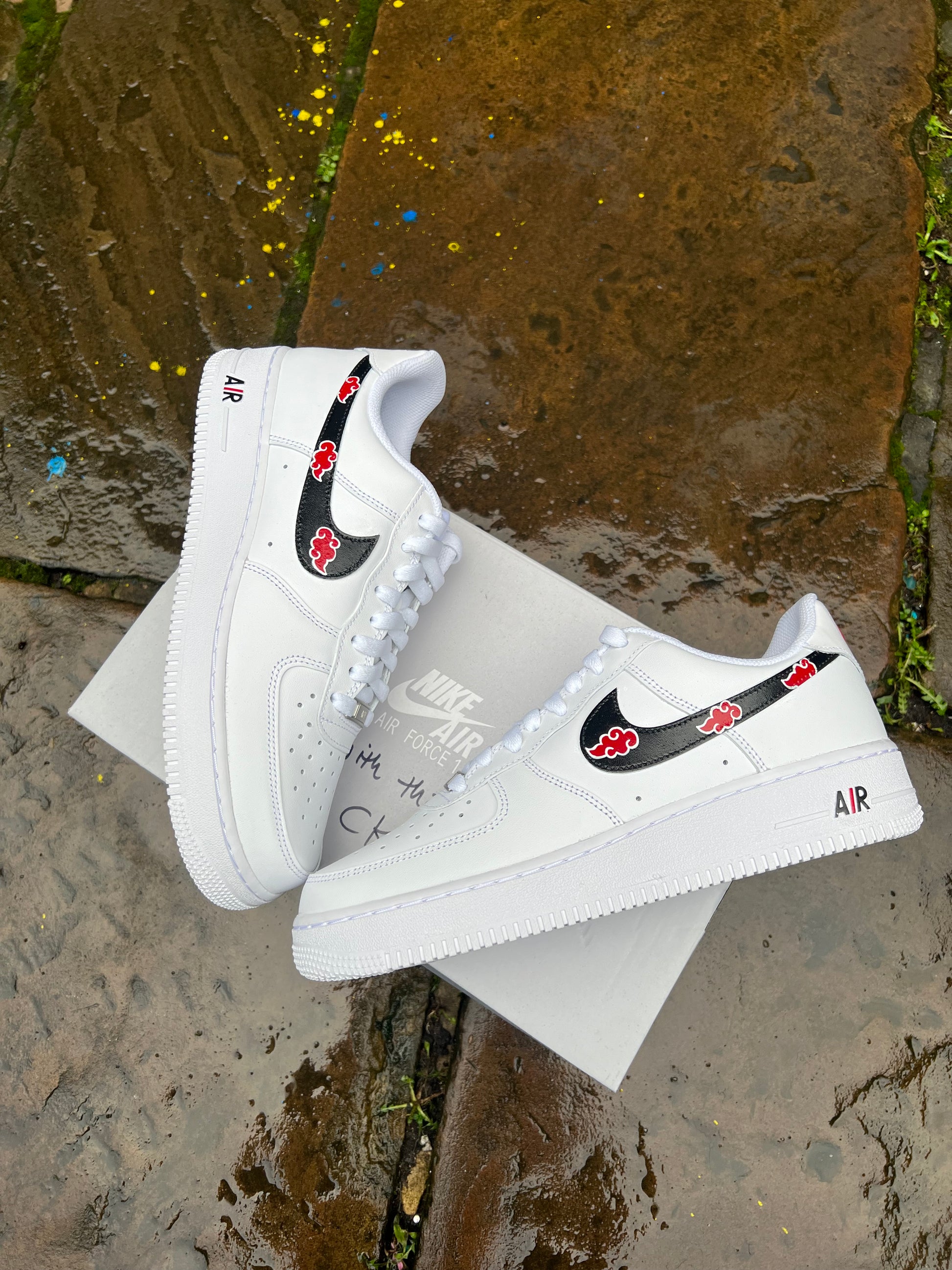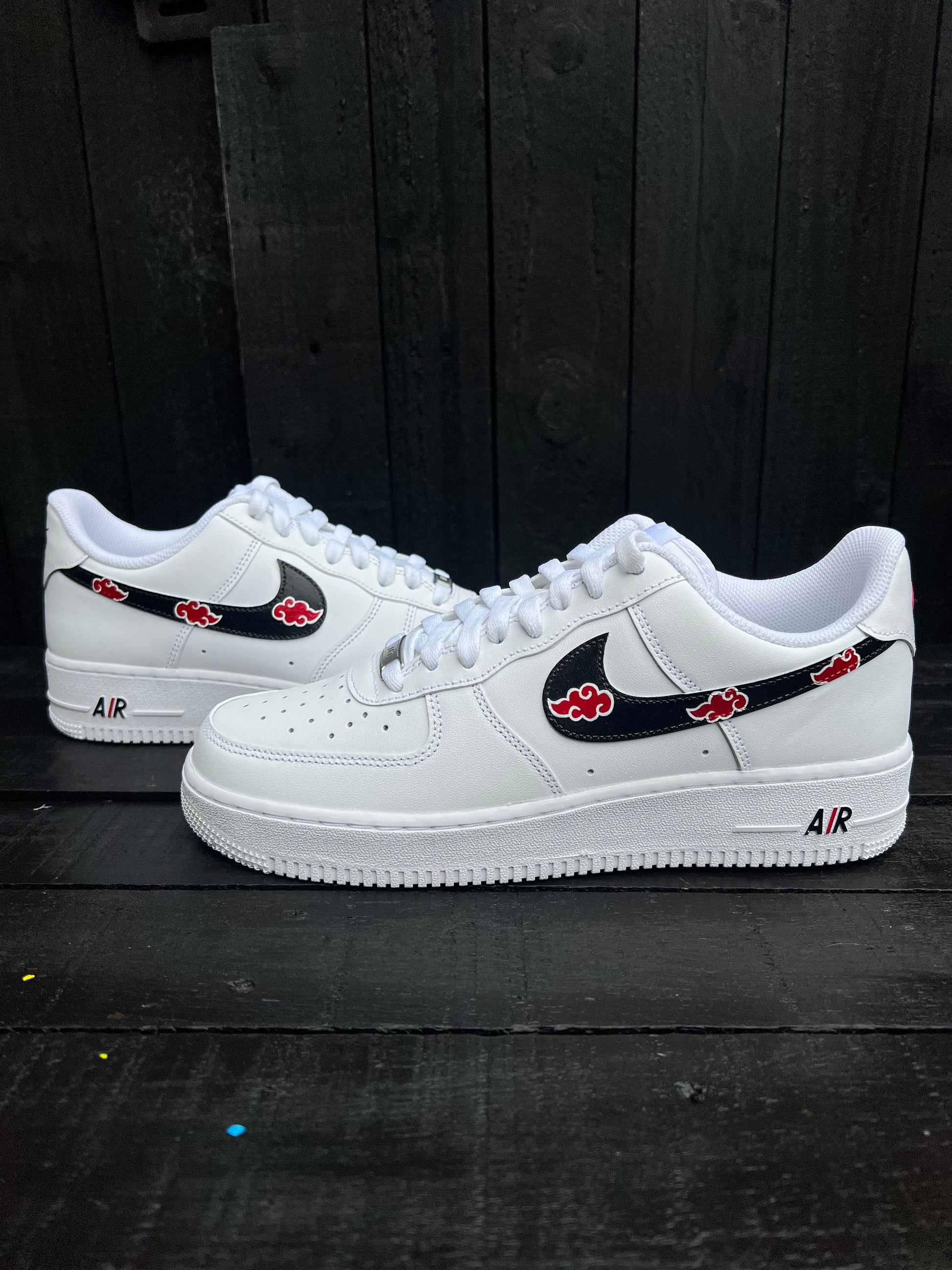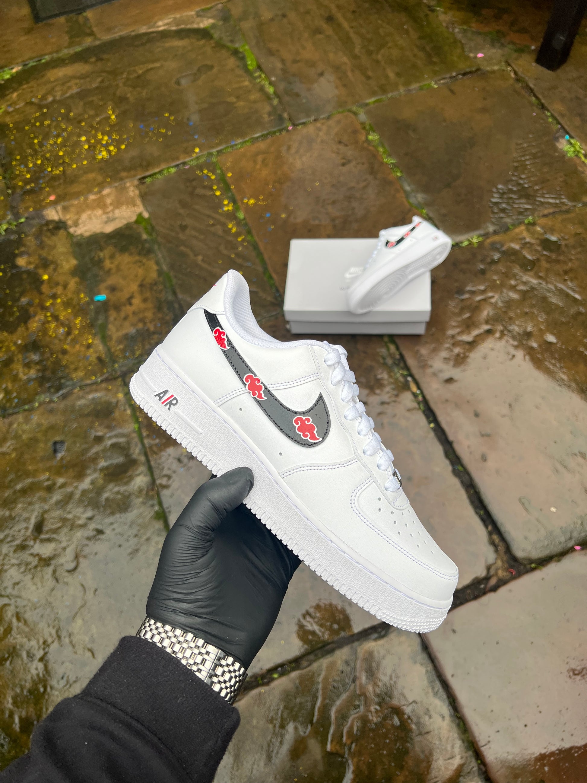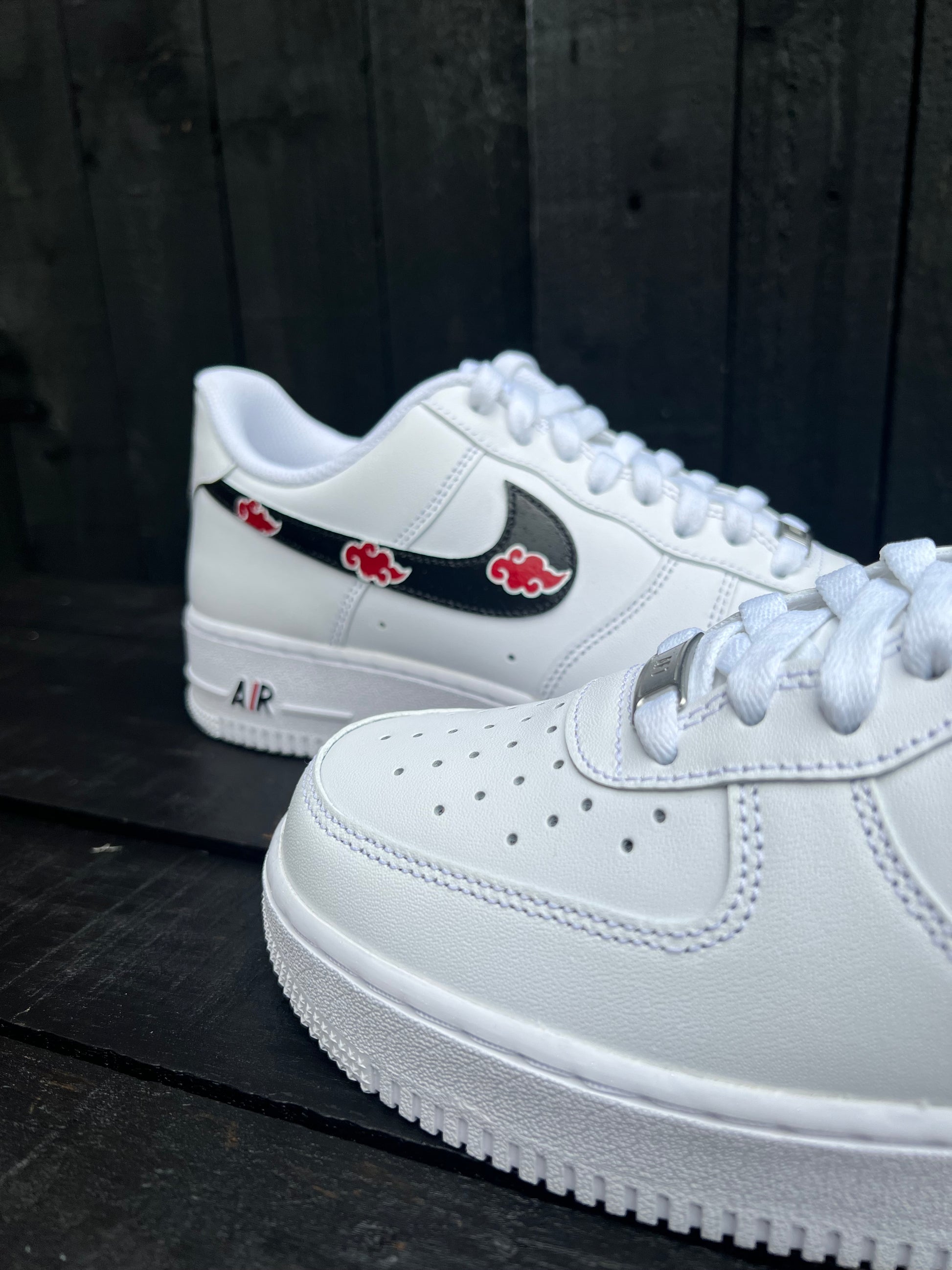 White AF1 with a stunning Akatsuki Cloud theme hand painted across all swooshes on both kickz.