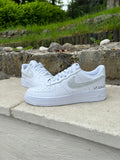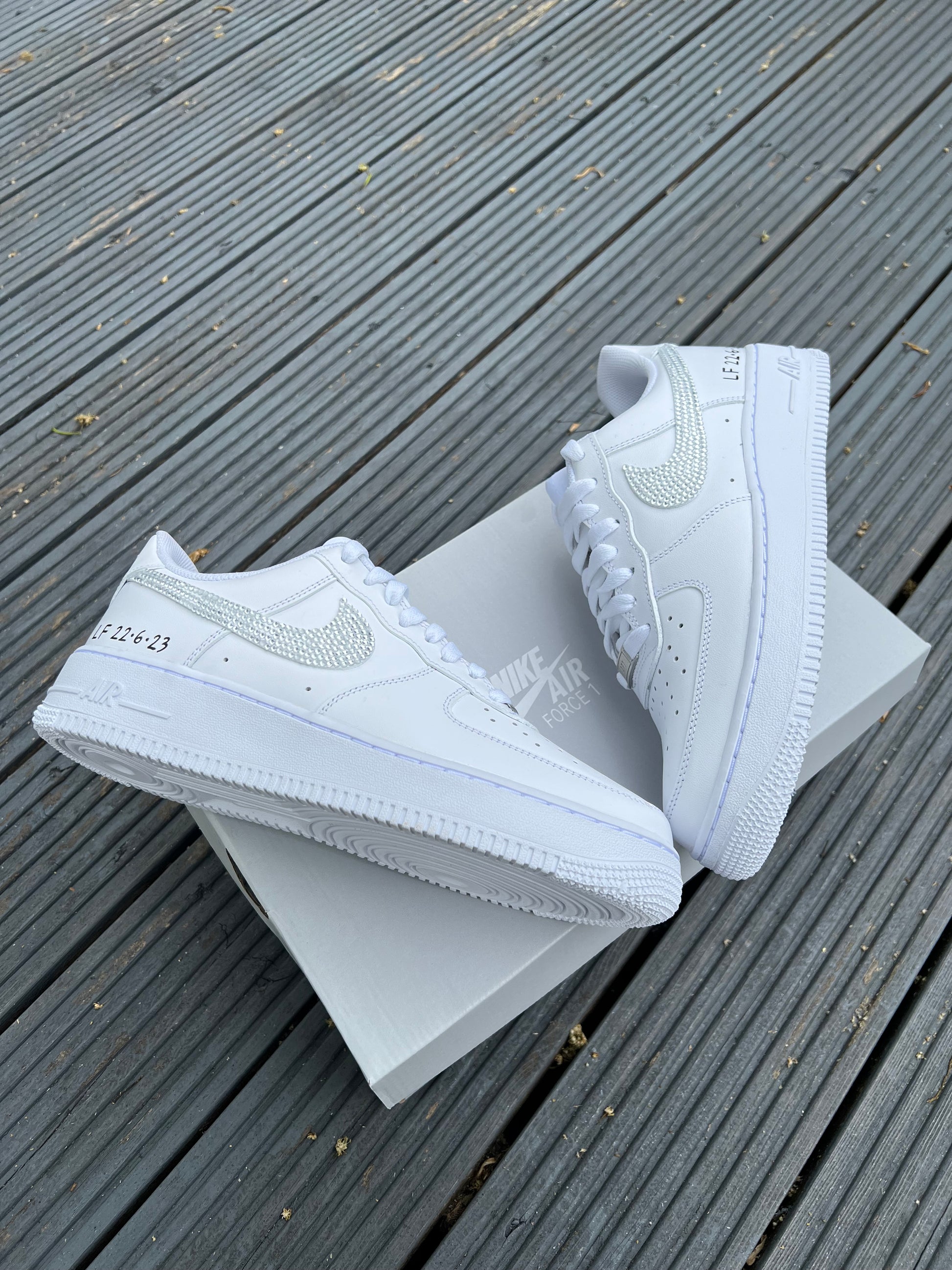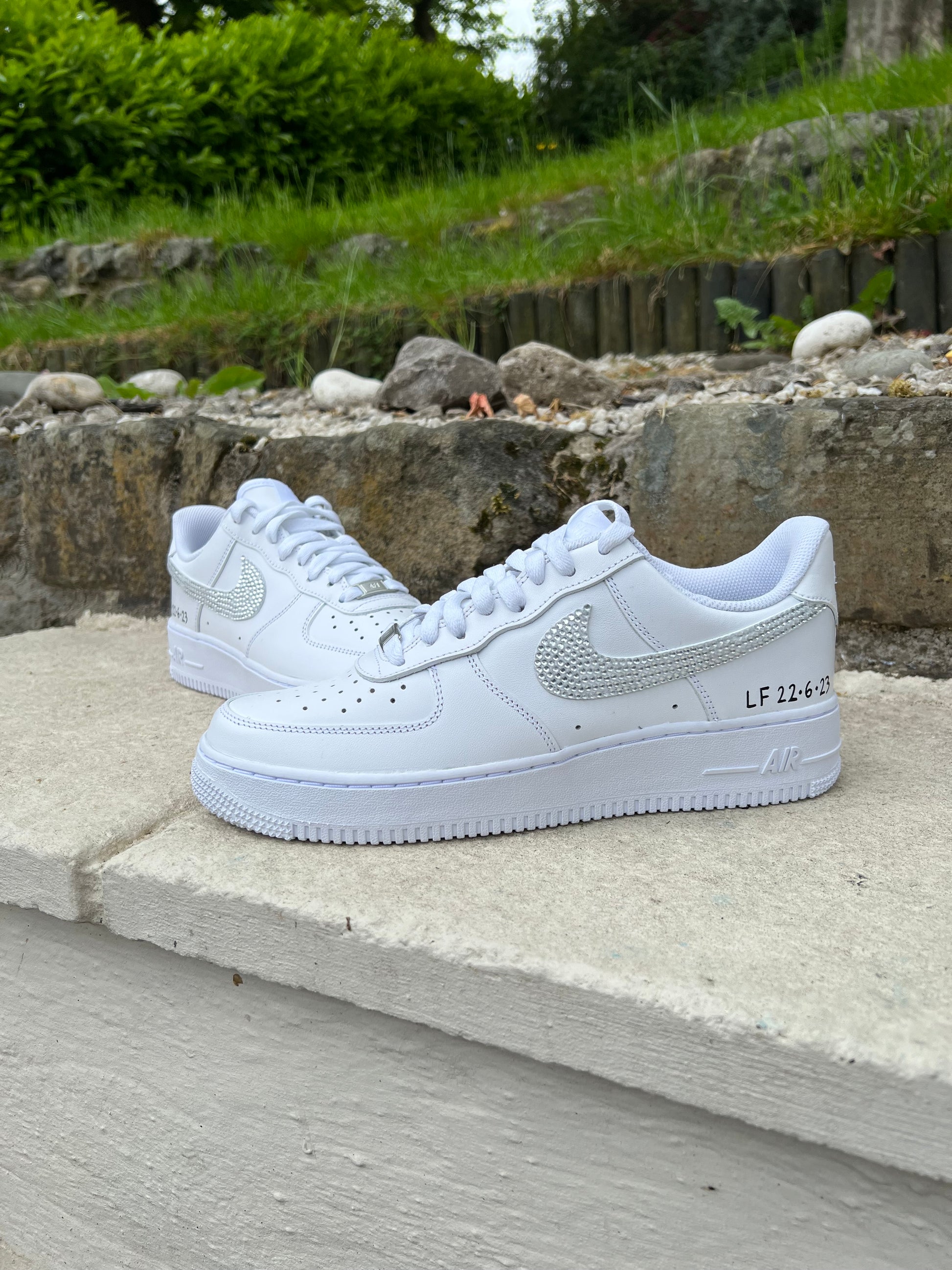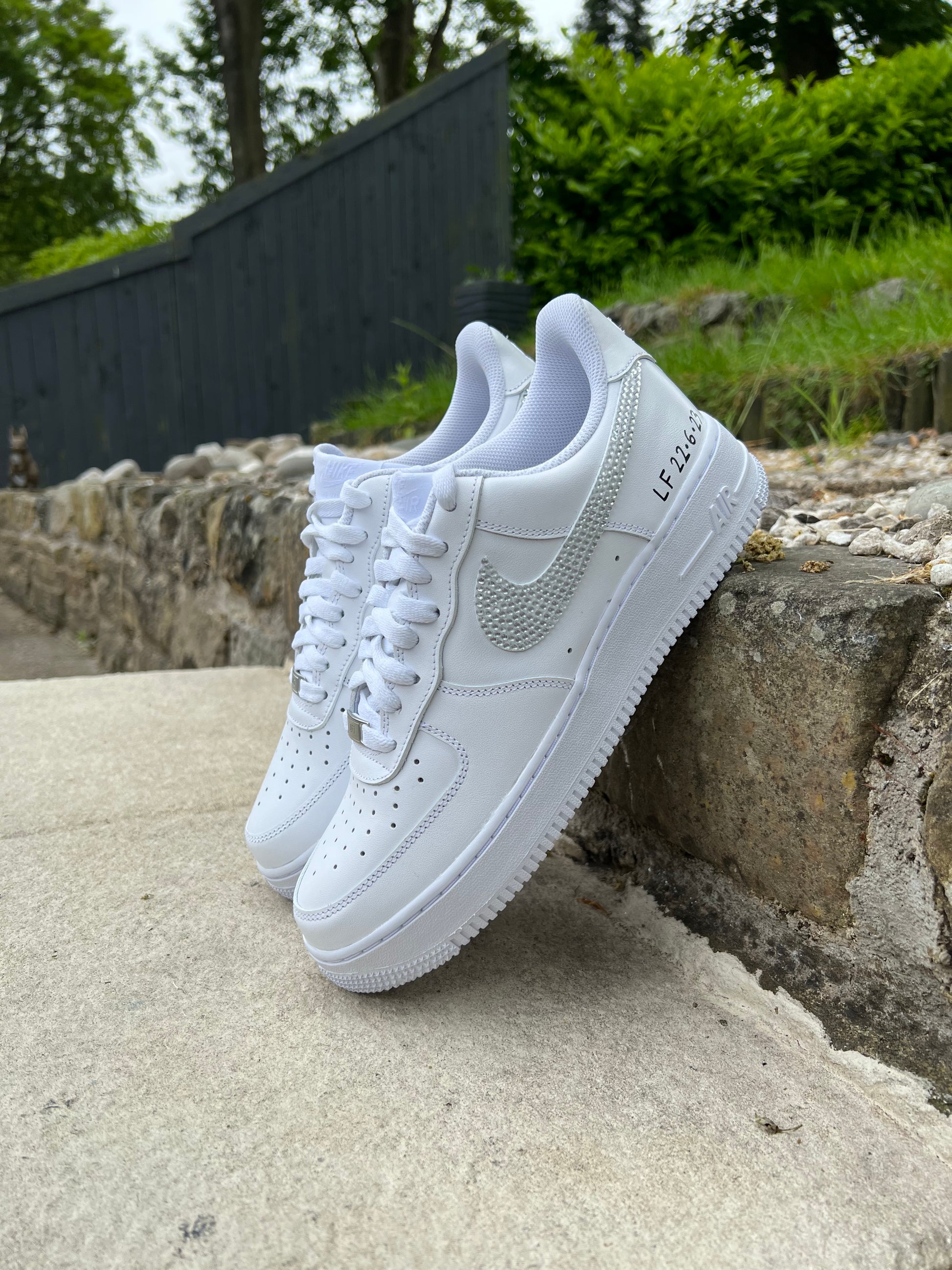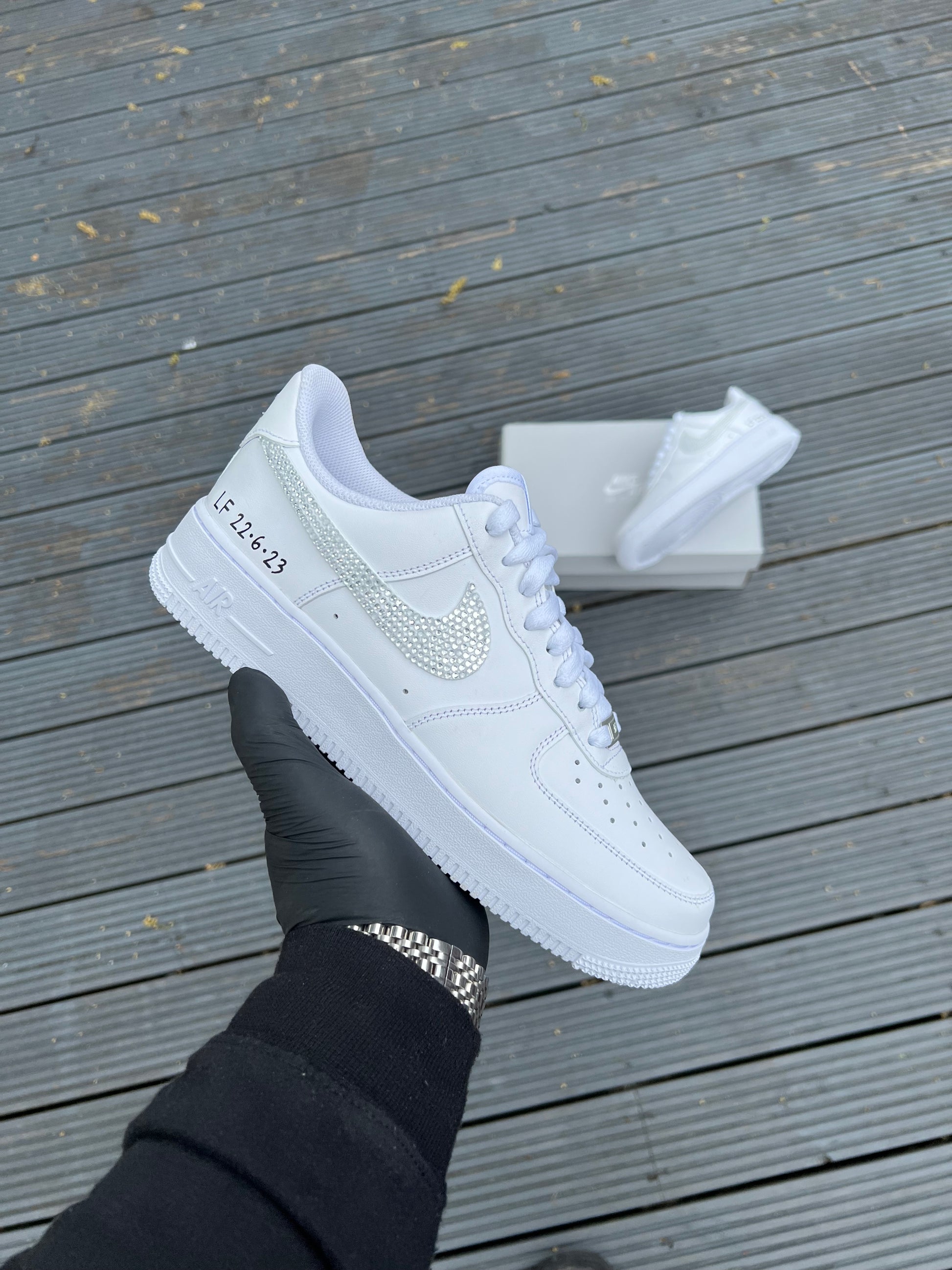 White AF1 with a stunning gem design. All swooshes are filled with small gem crystals making these bad boys stand out in any occasion when worn. All crystals have been attached using the best quality products we can get to insure they have the best durability.