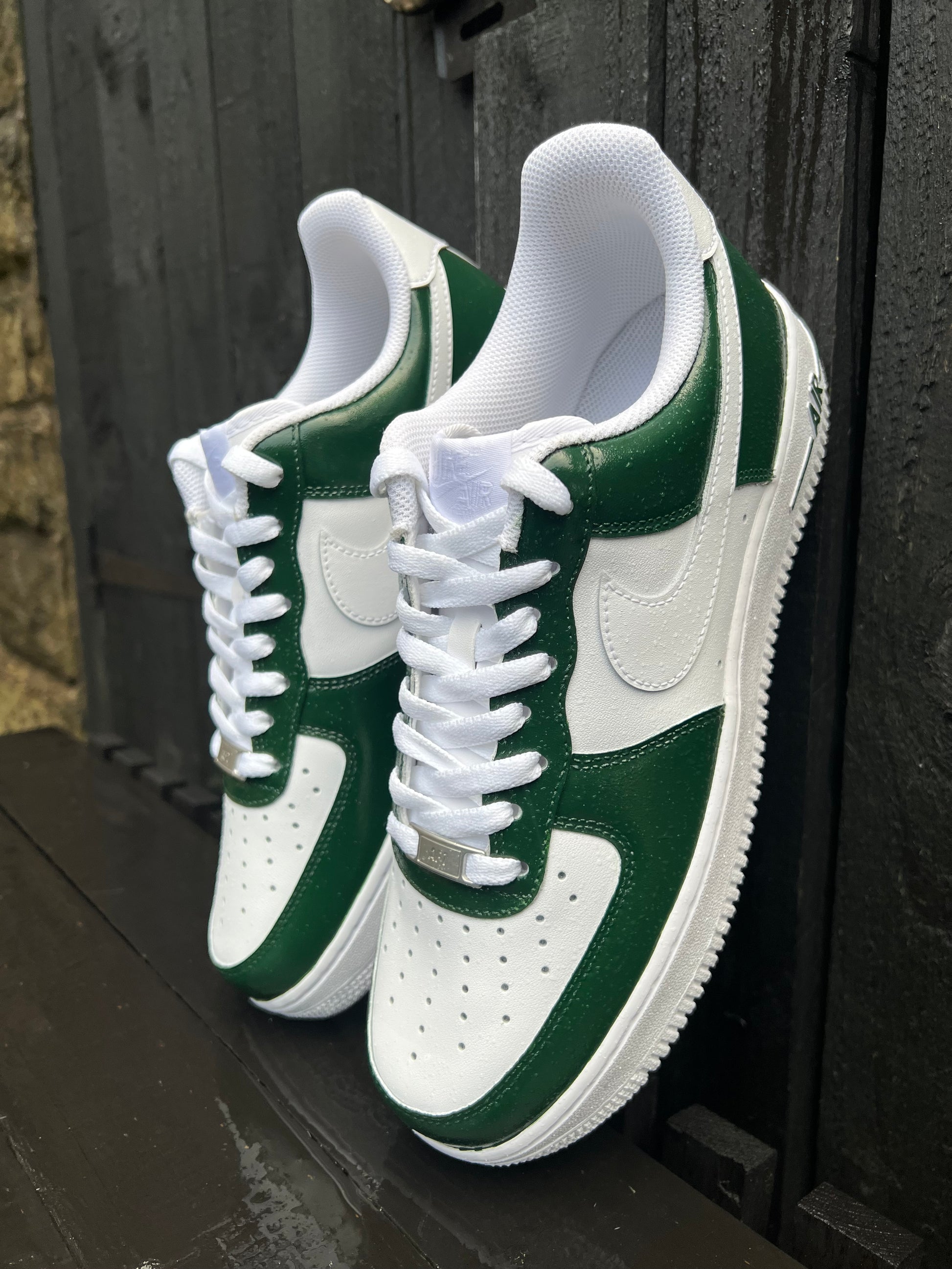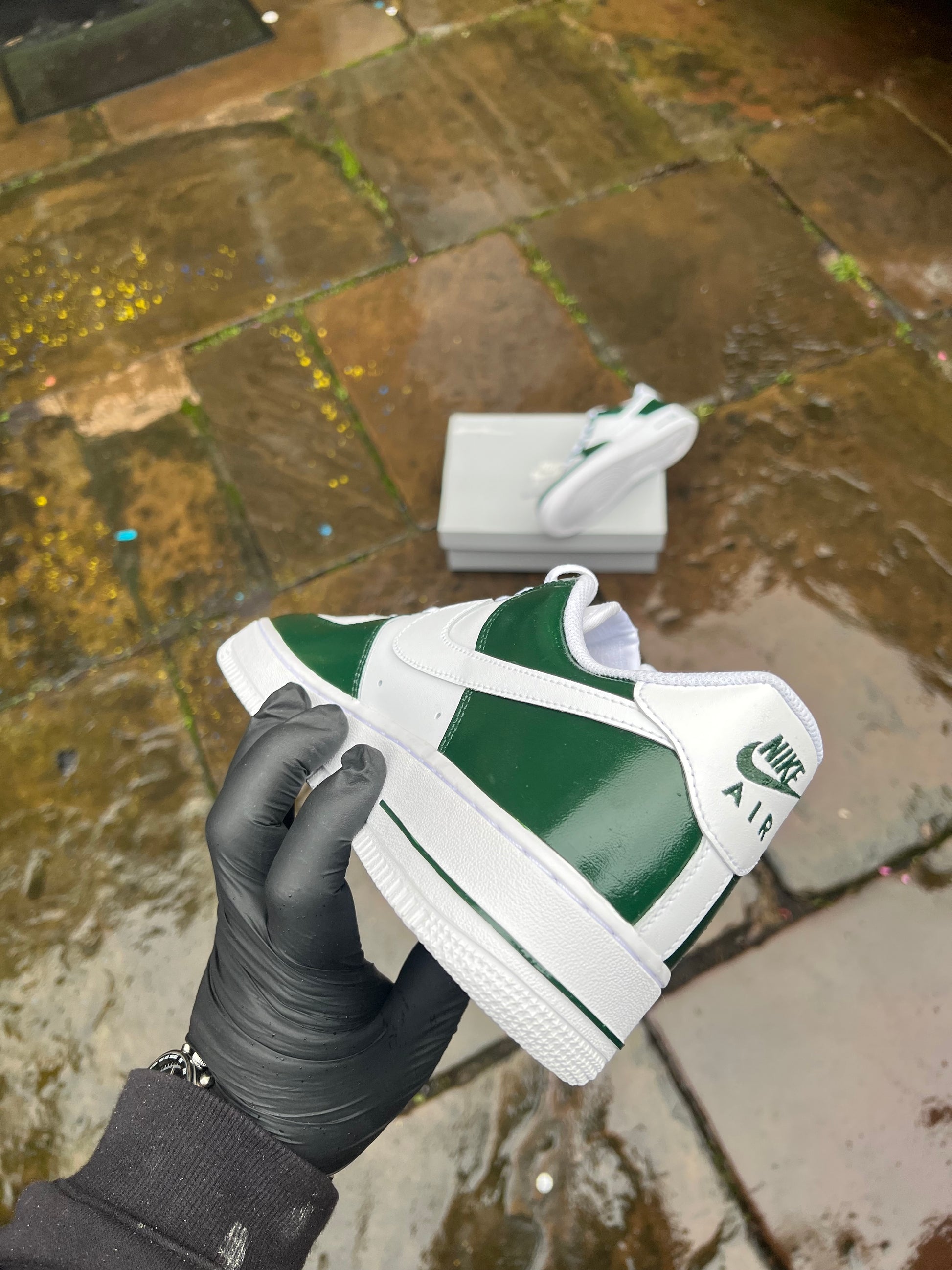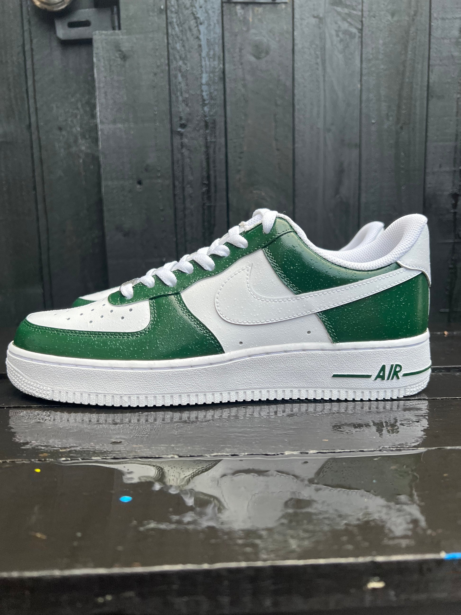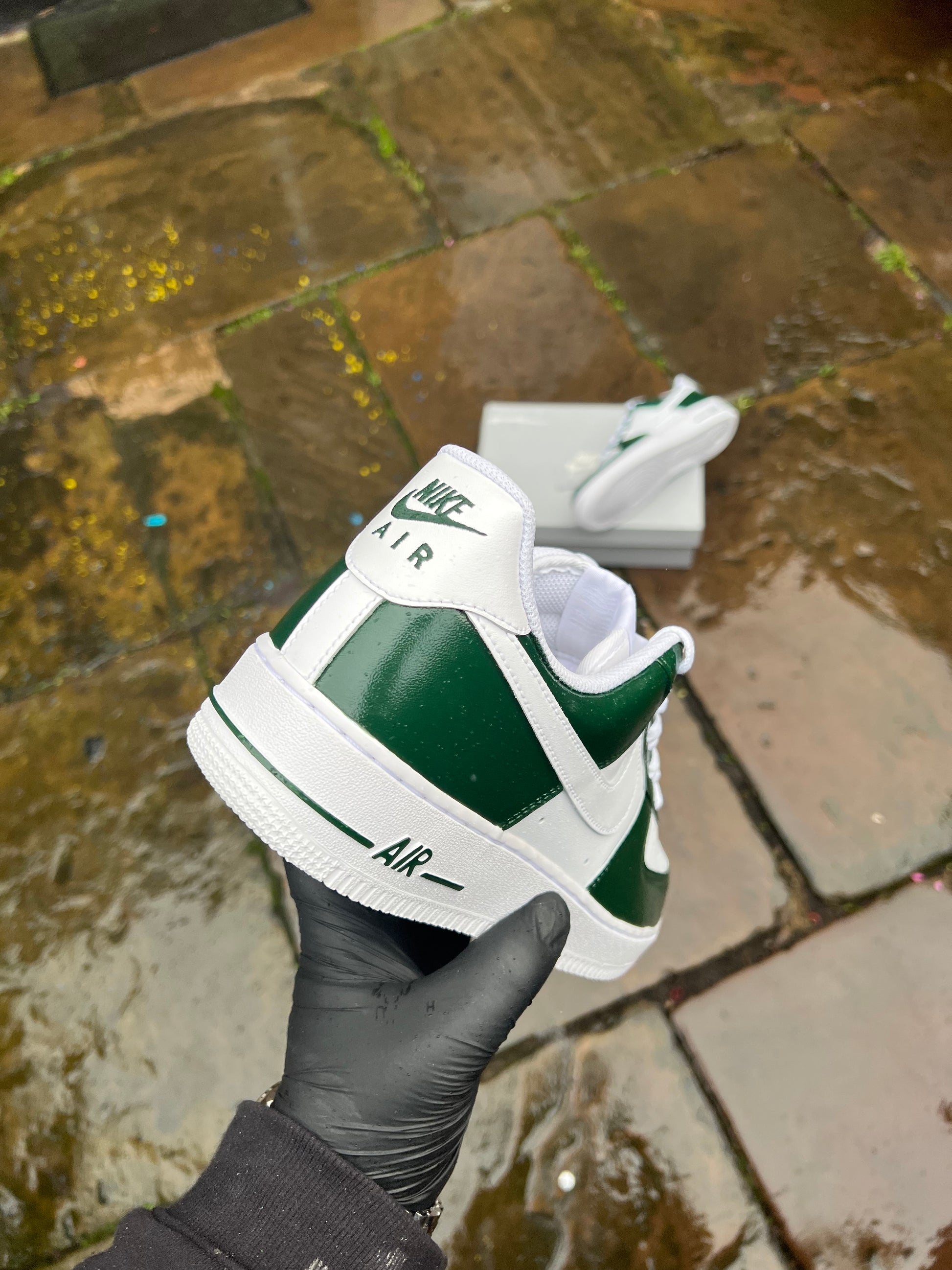 White AF1 with a stunning dark forest green colorway effect hand painted across the whole shoe giving the kickz a beautiful forest green colorway effect. Overall this design is absolutely stunning and is definitely a MUST HAVE in your collection. Especially if you love this color.