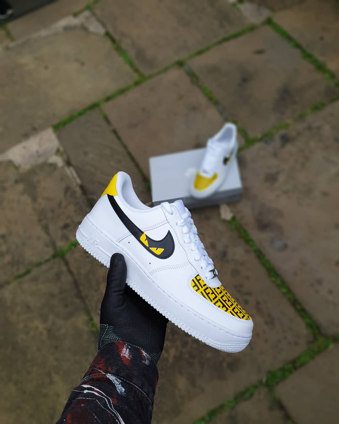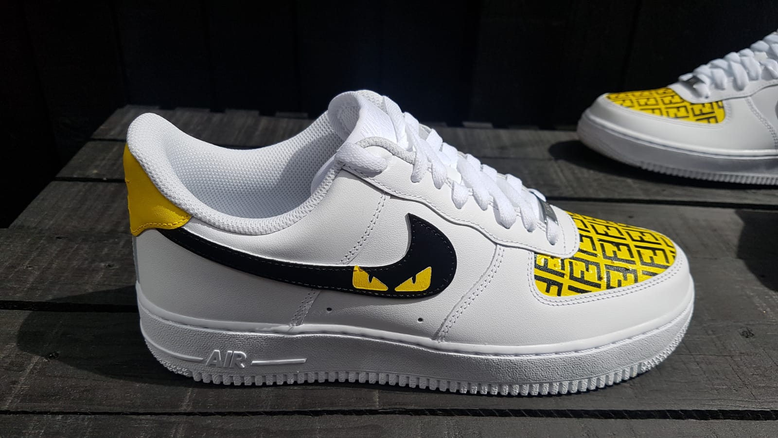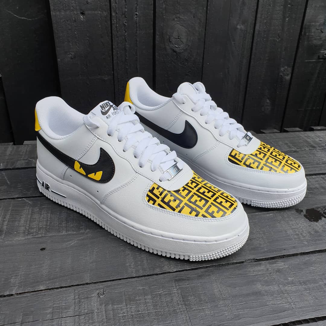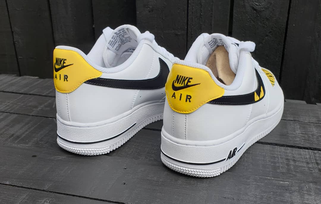 White AF1 with a stunning exclusive custom kickz special designer design hand painted across all ticks and fronts on this pair of trainers. The beautiful yellow and black color scheme looks amazing on this hand painted designer custom. Overall this design is absolutely stunning and is definitely a MUST HAVE in your collection.